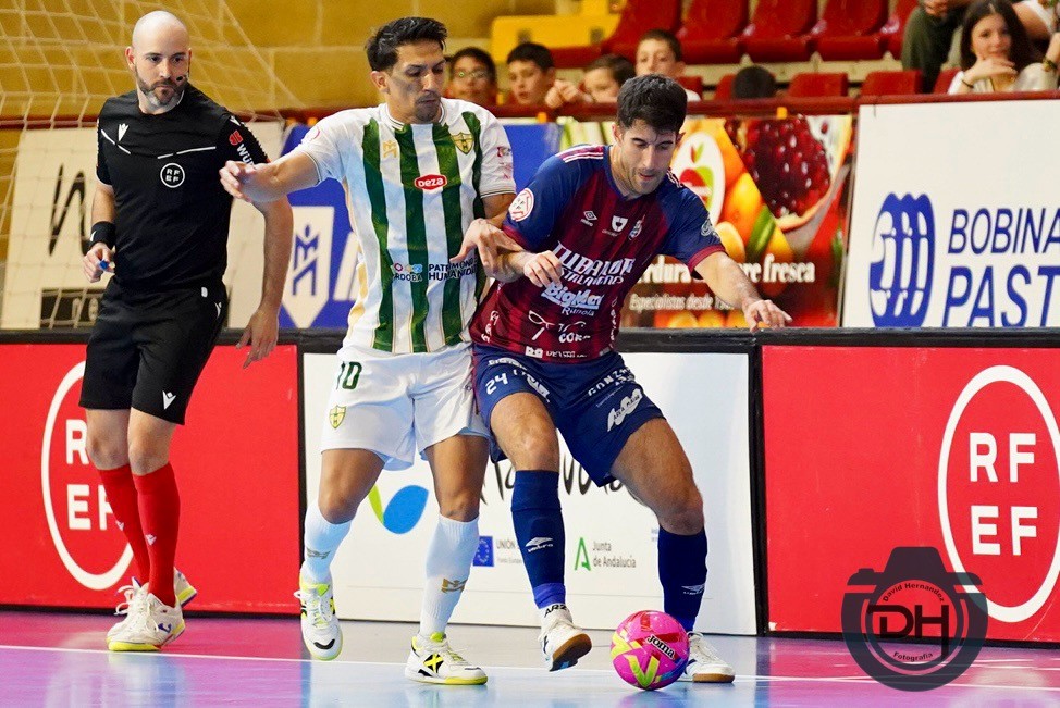 El choque tendría ritmo desde el principio, y en la primera jugad ya pudo adelantarse el equipo blanquiverde, después de que un rechace de cabeza de un defensor le cayese en los pies a Aranda, quien remató desviado. Acto seguido, fue Noia quien avisó con un remate de Montero al segundo palo tras una buena asistencia de Churrasco, aunque se marchó alto. Tras esto, sería Noia quien anotaría en una jugada afortunada, tras un rebote sobre Murilo en un saque de banda de que confundió a Fabio. En la acción posterior, Arnaldo Báez remataría para dentro un centro chut de Titi del Rey, pero lo haría ayudándose de la mano, por lo que el gol fue anulado y el paraguayo sancionado con amarilla. Después de estos minutos de más ida y vuelta, el partido se estabilizó, y aunque el Córdoba no sufría, le costaba generar ocasiones claras. Es por ello que Emma Santoro decidió solicitar tiempo muerto sobre el minuto catorce para tratar de encontrar una forma de perforar la meta visitante. Esto surtió efecto, pues primero Aranda dispuso de dos mano a mano prácticamente consecutivos con el portero. En el primero se impuso el meta brasileño, mientras que el segundo se fue alto. Esto sería la antesala del empate, ya que en el minuto posterior Pescio anotaría el empate con un grandísimo gol, dándose la vuelta estando de espaldas y poniéndola en la escuadra. David Palmas pediría tiempo muerto para calmar las aguas, pero no lo consiguió, ya que un minuto después Zequi remataría un pase de Aranda al segundo palo, tras una buena jugada del granadino, poniendo así el 2-1 en el marcador. Aunque Noia trataría de jugar de cinco los últimos segundos del primer acto, no habría más goles hasta el descanso.